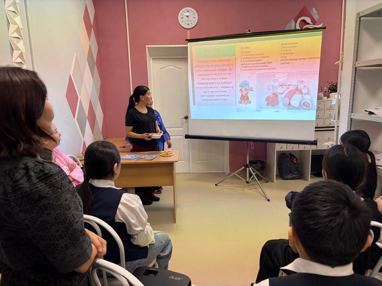 17 апреля 2026 года 2 Хомустахская сельская библиотека присоединилась к Всероссийской акции «Библионочь – 2026», которая была посвящена Году Единства народов России. Главная тема вечера — «Единство народов – сила России!» — отражала главную идею 2026 года, объявленную Президентом Российской Федерации. Библиотекарь рассказала гостям об истории «Библионочи» и о важности сохранения единства многонациональной России. На мероприятии была представлена тематическая книжная выставка, на которой были представлены культуры различных народов нашей страны. После этого был проведен познавательный час «Вкусный аромат народов мира».Главным путеводителем для нас стала книга «Блюда народов мира». Работники культуры выступили в роли настоящих поваров и подготовили для детей дегустацию национальных блюд рассказывая об обычаях разных стран и народов.Дети с удовольствием пробовали угощения, участвовали в викторинах.